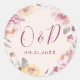 Sticker Rond Jardin romantique aquarelle mariage floral monogra