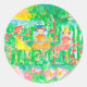 Sticker Rond Jardin Tea Party Filles Aquarelle Fleurs