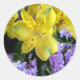 Sticker Rond Jaune et Fleurs Lilac Violettes