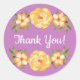 Sticker Rond Jaune Floral Vert Feuille Merci pourpre