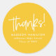 Ajoutez une touche élégante à vos enveloppes de cartes de remerciements de graduation et sacs de faveur de la fête de graduation avec des autocollants de graduation personnalisés. Les autocollants de graduation présentent "merci !" dans un script blanc écrit à la main avec un arrière - plan jaune ou la couleur de votre choix. Personnalisez les autocollants de remise de diplômes jaunes en ajoutant le nom du diplômé, le nom de l'école et l'année de remise de diplômes.