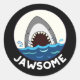 Sticker Rond Jawsome Funny Shark Teeth Pun Dark BG