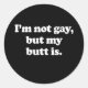 Sticker Rond Je ne suis pas gay, mais mon cul est (Pickup Line)
