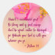 Un autocollant rond classique inspirant dépeint l'image de belles fleurs de sakura roses contre l'arrière - plan de corail doux orange ou clair. Le verset du World English Bible (qui est dans le domaine public) : "Ne vous ai-je pas commandé ? Soyez forts et courageux, n'ayez pas peur, ne soyez pas consternés, car l'Éternel, votre Dieu, est avec vous où que vous alliez. - Joshua 1:9". En coque, vous voulez transférer la conception à un autre produit, cliquez sur le bouton bleu "Personnaliser" ou "Modifier la conception" (comme le coque peut être) pour ajuster les images et les textes à la taille et la forme des produits choisis, modifier les images et tout. Soyez créatif et profitez de la carte.