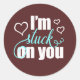 Ajoutez un petit humour de Saint-Valentin avec ce mignon autocollant qui déclare "Je suis coincé sur vous". Le texte est orné de petits coeurs et peut être utilisé sur n'importe quelle couleur arrière - plan de votre choix.