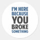 Sticker Rond Je suis ici parce que tu as cassé quelque chose