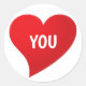 I Love You, coeur rouge blanc Sticker rond classique