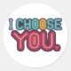 Ce t-shirt comporte l'expression "I Choose You." dans un vif dégradé arc-en-ciel. Chaque mot est d'une couleur différente, créant un look gai et positif. L'arrière - plan est un blanc simple, laissant le texte coloré prendre le centre de la scène.