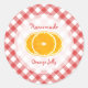 Autocollants rétro personnalisables pour confiture d'orange maison, gelée de mandarine ou conserve des jarres avec des tranches de ornement fraîches sur motif de nappes en vichy rouge et blanc. Les autocollants peuvent personnaliser le couvercle ou le bocal lui-même. D'autres autocollants de confiture de fruits et étiquettes également disponibles!