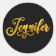 Faux brillant jaune doré ombre foil sur un carrelage en céramique noire décorative élégants autocollants pour un cadeau de mariage de femme d'honneur pour votre fête de mariage. La lettre que j'ai en son nom Jennifer a un coeur moderne mignon. La police comprend un style de calligraphie ornementale. Je peux ajouter un nom pour votre servante. Boîte cadeau pour une femme de ménage nommée Jennifer. Boîtes cadeaux personnalisées.