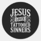 Sticker Rond Jesus Loves Tattooed Sinners Christian Faith Inked
