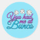 Tu m'as eu à Bunco. Une expression pop culture amusante pour un jeu amusant. Avec une photo de dés qui roule sur un bel arrière - plan bleu.