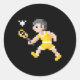 Sticker Rond Jeu vidéo Retro 80s Pixel Art Badminton Player