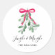 Cet autocollant de fête de Noël est décoré avec un faux-pied vert aquarelle, un ruban rouge et une typographie stylisée qui dit "Jingle et Mingle" facilement personnalisable. Aquarelle originale © Michele Davies.