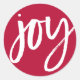 Un autocollant de vacances simple et moderne avec le mot "joie" dans une écriture manuscrite moderne. La couleur Arrière - plan peut être changée pour correspondre à votre carte de vacances ou à votre couleur de vacances préférée.