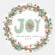 Ajoutez une touche festive à vos cadeaux de vacances, des cartes avec cet autocollant personnalisé "Joy" de famille. Cet autocollant rond comporte le mot "JOY" dans une police verte à la sauge douce, avec la lettre "O" décorée comme un flocon de neige rouge pour un accent saisonnier gai. Le design est encadré par une belle couronne d'aquarelle d'eucalyptus feuille et de baies rouges, créant un look de vacances classique. Customisez-le avec votre nom de famille et l'année ci-dessous pour une touche spéciale et personnalisée.