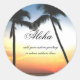 Autocollants personnalisés de palmier d'Hawaï avec la vue de coucher du soleil. Customisez avec votre propre salutation ou utilisation en tant que joints d'aileron d'enveloppe d'adresse de retour.