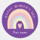 Joli arc-en-ciel Happy féminin jour coutume Sticker Classic Round...La Journée internationale des femmes est le 8 mars. Faites passer le mot en portant cet autocollant. #EmbraceEquity. Il a un design d'illustration arc-en-ciel avec du texte personnalisé dessus. Célébrez cette journée des femmes à votre bureau, cadeau d'espace de travail avec cet autocollant pour la journée des femmes modifiable à votre personnel féminin, collègues, fête de fête des femmes, conférences et cafés.