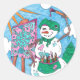 Sticker Rond Joli Artiste Art Snowman Fête Noël