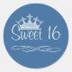 Sticker Rond Joli chevalet bleu couronne 16 Anniversaire
