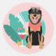 Sticker Rond Joli chien d'été avec lunettes de soleil