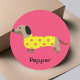 Sticker Rond Joli chien jaune et rose Dachshund Funny