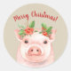 Sticker Rond Joli Cochon de Noël Rustique Pays vacances Personn
