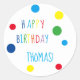stickers mignons et colorés avec des points et un joyeux message d'anniversaire. Facile à customiser ! Idéal pour ajouter une touche spéciale à tout objet que vous souhaitez décorer. N'hésitez pas à me contacter si vous avez besoin d'aide pour personnaliser ce design ou d'autres dans mon magasin.