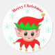 Sticker Rond Joli elfe de Noël et flocons de neige