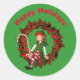 Sticker Rond Joli Elfe En Fête De Noël