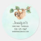 Des autocollants d'affaires avec une adorable paresse accrochés à l'envers d'une branche d'arbre. La branche d'arbre est décorée de feuilles tropicaux et de baies. Placez-vous sur un arrière - plan vert clair.