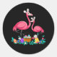 Sticker Rond Joli Flamant rose de Pâques avec Panier de Pâques