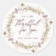 Ces stickers personnalisés sont parfaits pour Thanksgiving ! Ils présentent une couronne fleur sauvage dans les tons terreux de beige, de marron, d'ivoire, de vert sauge et de violet de prune sur un arrière - plan d'ivoire clair, ainsi qu'une typographie stylée qui dit : "Merci pour vous." Utilisez-les comme étiquettes de faveur lors d'un dîner ou pour des étiquettes cadeaux. Idéal pour les cadeaux Thanksgiving pour professeur!
