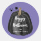 Sticker rond Halloween classique personnalisé Citrouille de script mignon et violet.