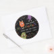 Baguette d'Halloween sur le thème du monstre mignonne avec de mignons monstres en orange, vert et violet entourés de confettis.