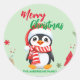 Sticker Rond Joli manchot de Noël Père Noël Scarf vacances