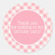 Sticker Rond Joli Merci Anniversaire à Carreaux Rose Blanc Ging