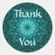 Un joli mandala de fleur kaléidoscope en bleu sur le rond merci autocollants.