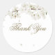 Elégante jolie floraison blanche merci sticker rond classique avec fleur de printemps délicate encadrant votre message de remerciement dans un élégant texte doré. Parfait pour les autocollants ou les scellés d'enveloppe. Conçu par Thisisnotme©