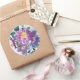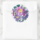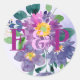 Sticker Rond Joli Monogramme bleu violet Mariage floral