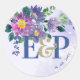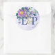 Sticker Rond Joli Monogramme violet bleu Mariage floral