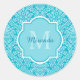 Sticker Rond Joli Motif Turquoise Damask Monogramme Avec Nom