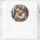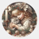 Mignons autocollants de Noël vintage à l'ancienne. Une petite fille tenant un chaton la nuit de Noël.