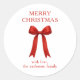 Mignons autocollants de Noël avec un design simple et minimaliste avec un arc rouge, ainsi que l'accueil "Joyeux Noël" et votre nom de famille.
