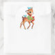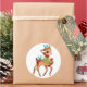 Sticker rond classique à col rouge de Noël Holly Reindeer Green.