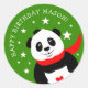 Sticker Rond Joli Panda d'anniversaire avec Casquette Bowler &