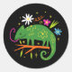 Sticker Rond joli personnage de bébé camelon vert et décalé.