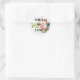 Sticker Rond Joli Rose aquarelle et Mariage de feuillage