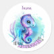 Stickers avec le Seahorse le plus mignon avec le texte "La mer est génial allons-y" dans un été brillant, mer, couleurs. Personnalisez facilement le nom et n'oubliez pas de visiter le magasin pour les articles correspondants. :) Kate Eden Art