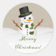 Sticker Rond Joli Snowman Souriant Avec Joyeux Texte De Noël